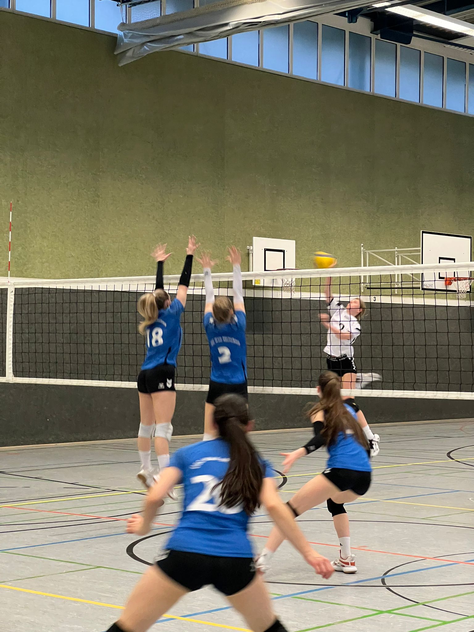 Der zweite Satz hingegen war vor allem zu Beginn sehr ausgeglichen. Die Gegnerinnen zeigten starke Angriffe und konnten sich ab der Mitte des Satzes vom ÜSC absetzen. Abstimmungsfehler in der Abwehr erleichterten es dem Gegner, auch diesen Satz zu gewinnen.